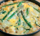 - Crack an egg into the centre of each dish and bake in an oven at 180C/350F/Gas 4 until the egg whites are set and opaque, but the yolk is still runny (12-15 mins).