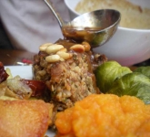 - Cream the butter and sugar together, and stir in the ginger and raisins. Divide the mixture between the Bramleys, pushing it into the cavities, then place them in an ovenproof dish.