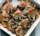 - Preheat oven to 200C/400F/Gas 6. Cut the bread in half lenthways, then make several cuts one third of the way up the length to look like broom bristles. Repeat with the other bread, put onto a large baking sheet and drizzle with olive oil. Bake for 5-8 mins until becoming golden.